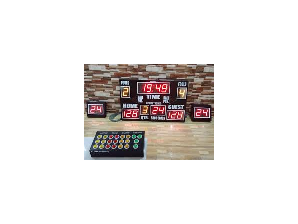框架尺寸:30"x48",1unit 主顯示器無線記分板,2units 25m 射擊時鐘。每個電纜,無線控制鍵盤,自動氣喇叭系統(tǒng),。咨詢電話18069884716